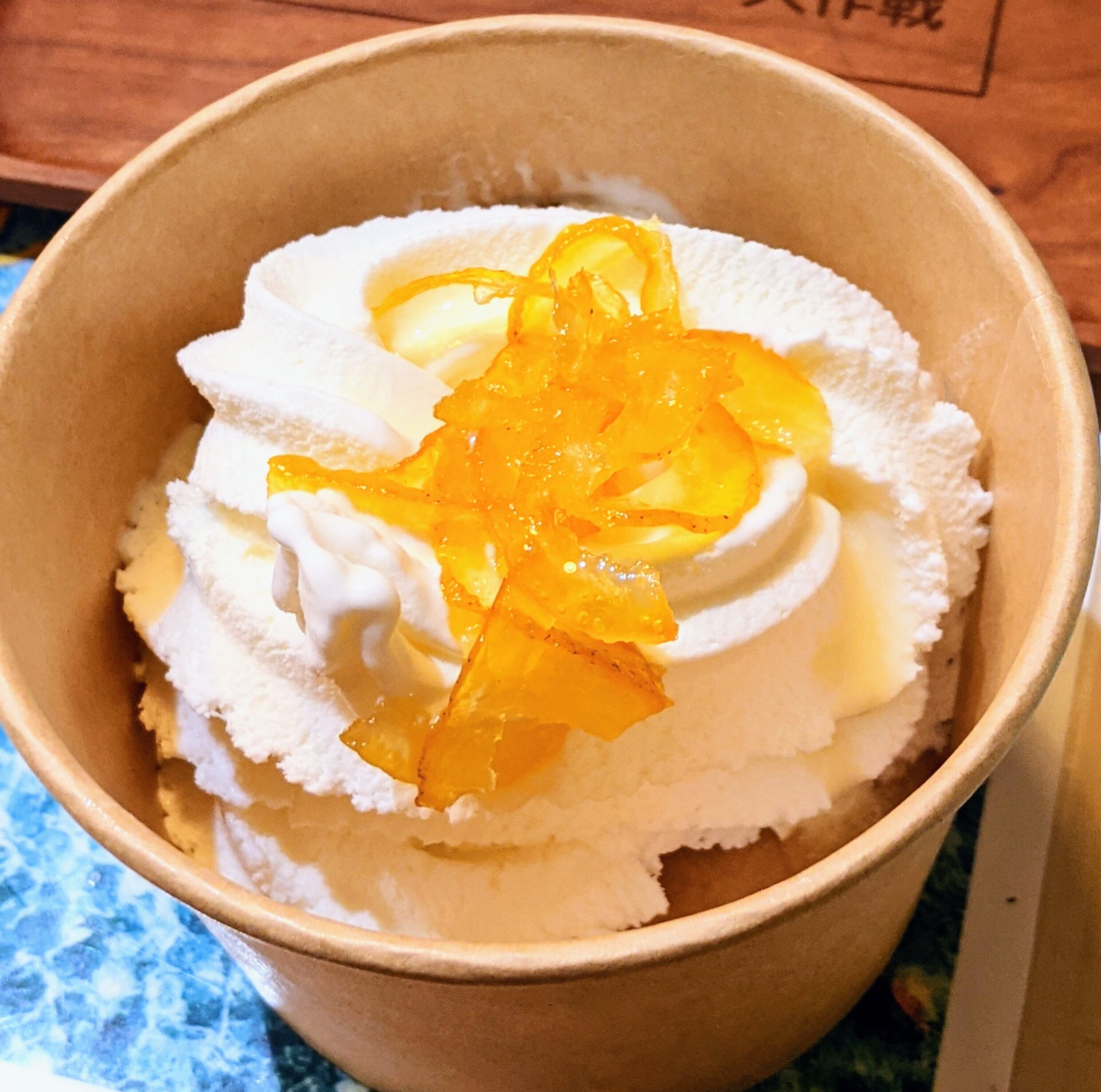 ※写真2枚目はソフトクリームにゆず皮をスライスし乗せ、烏山椒の花のはちみつをかけた写真です。